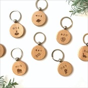 お名前と、好きな赤ちゃんの絵柄を選んで刻印する木製のキーホルダーです。