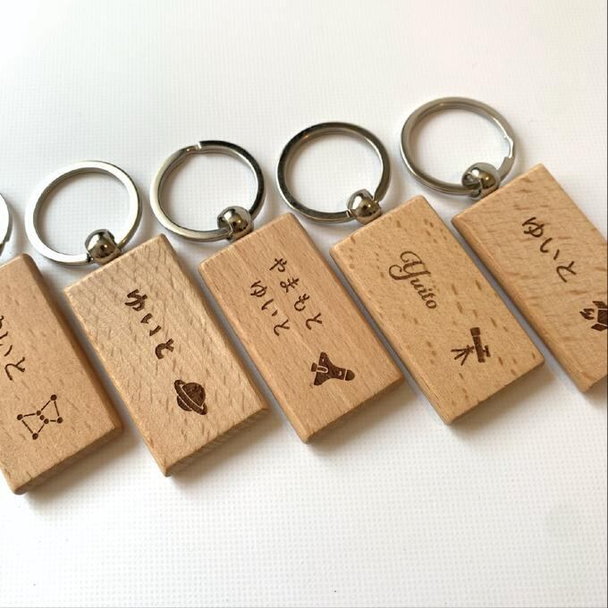 お名前と、好きな宇宙の絵柄を選んで刻印する丸くて可愛い木製のキーホルダーです。